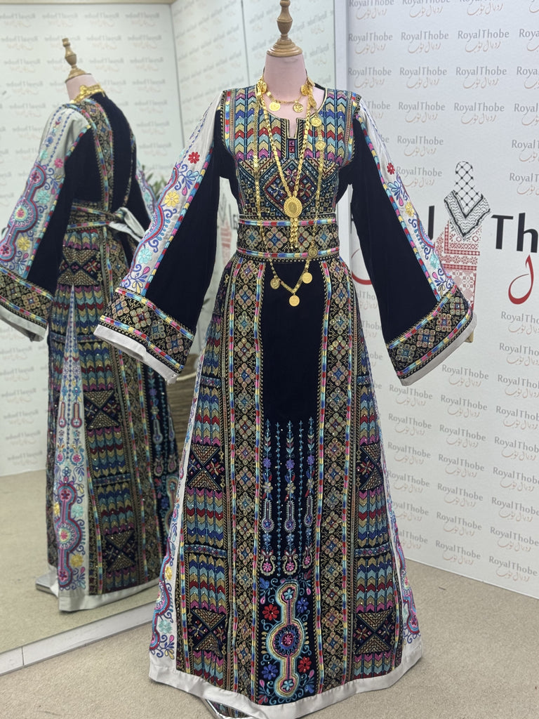- Our Newest Velvet Navy Blue Maleka Long Full Embroidered Thobe.