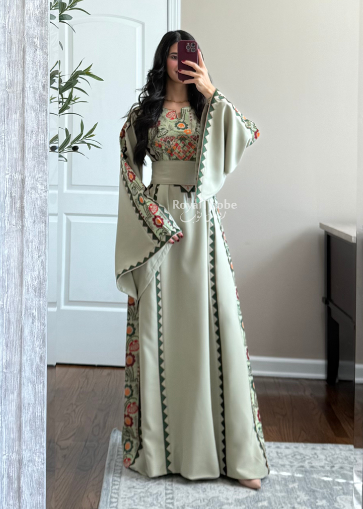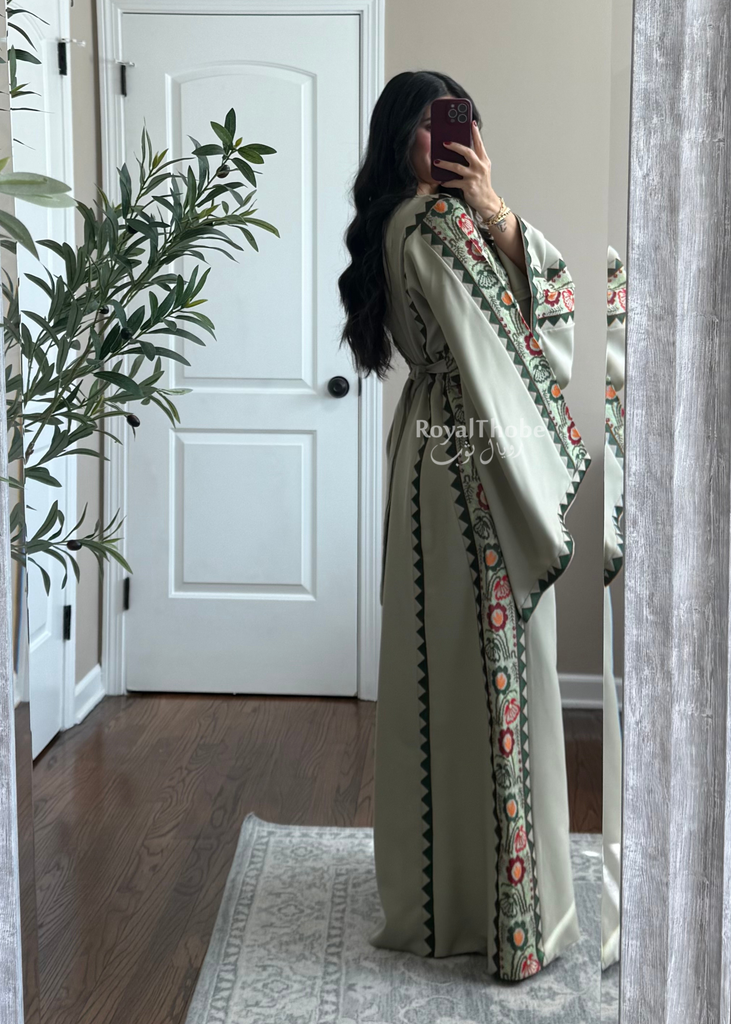 - Our Newest Sage/Olive Green Simple Floral Long Embroidered Thobe/Dress