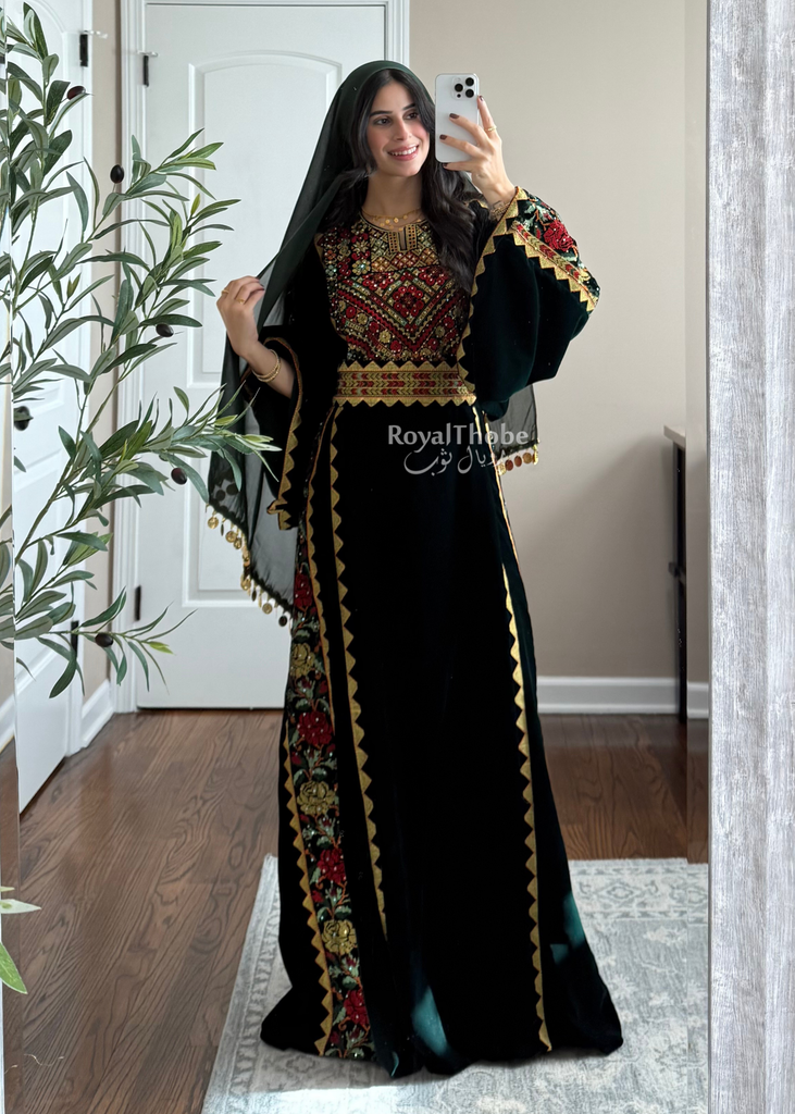 - Our Newest Velvet Olive Green Simple Floral Long Embroidered Thobe/Dress